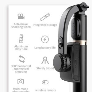 Q08 Mini Gimbal Anti-Shake 1-Axis STABILIZER Extendable Selfie Stick Tripod, Wireless Remote for Smartphone, Black